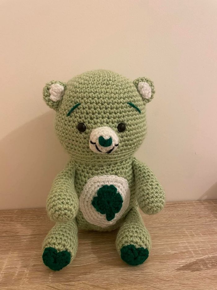 Peluche au crochet part moi même (10 cm et 138g) Réalisée en fil 💯% de polyacryl Rembourrage de qualité, anti acariens et hygiène (ne moisit pas) Ne convient pas aux moins de 3 ans car elle contient des yeux de sécurité Non négociable