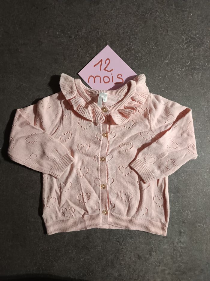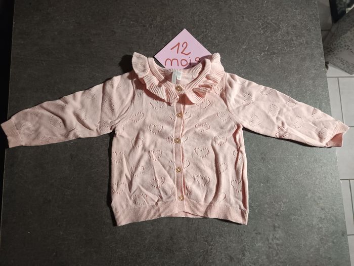 Gilet rose avec petits coeurs, NEUF jamais porté ! Taille 12 mois