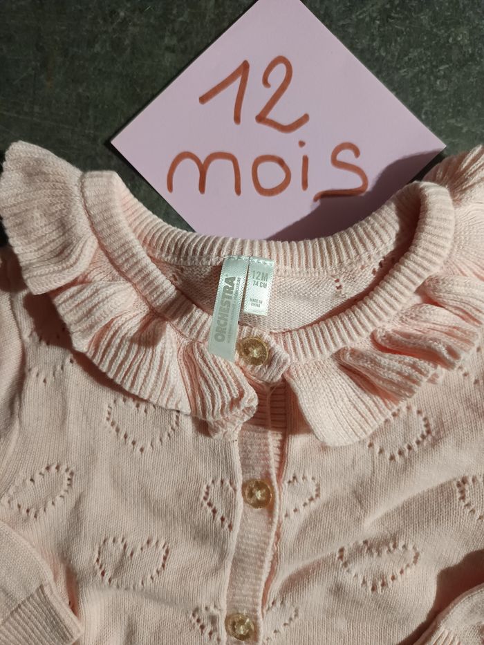 Gilet rose coeurs 12 mois - photo numéro 1