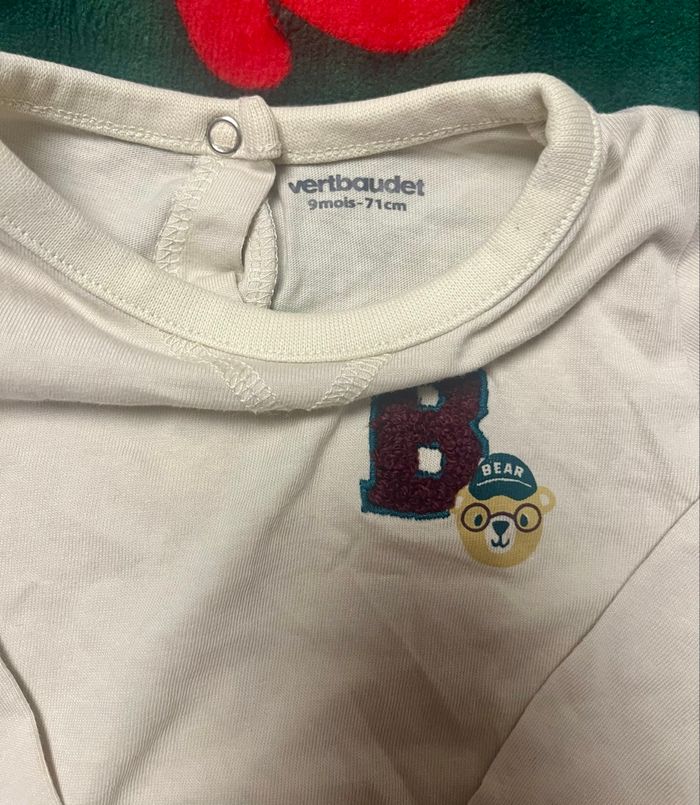 TEE shirt manches longues de marque Vertbaudet en taille 9 mois Attache boutons pressions dans le dos TBE