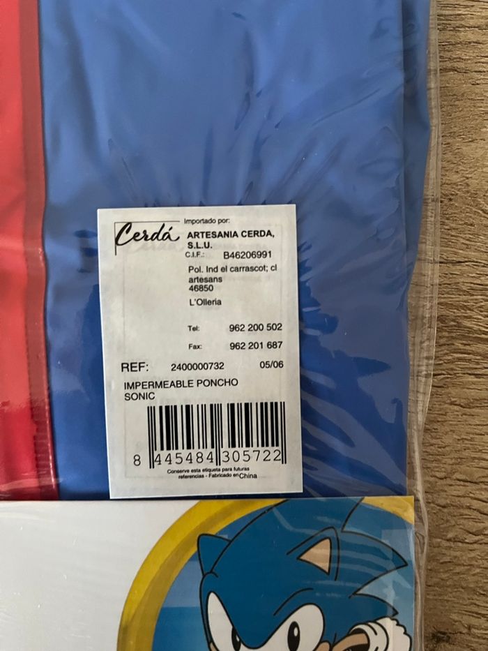 Poncho de pluie Sonic 5/6ans - Neuf - photo numéro 1
