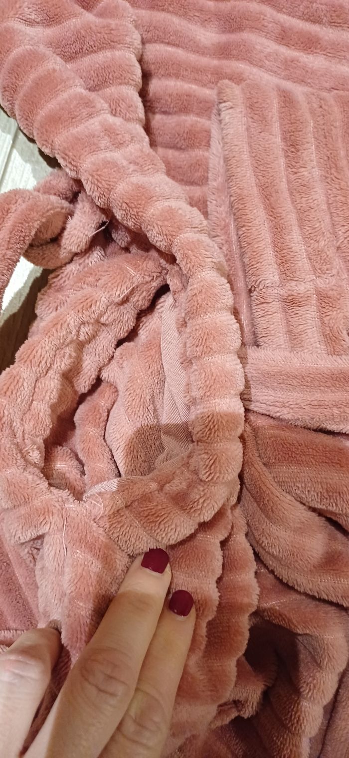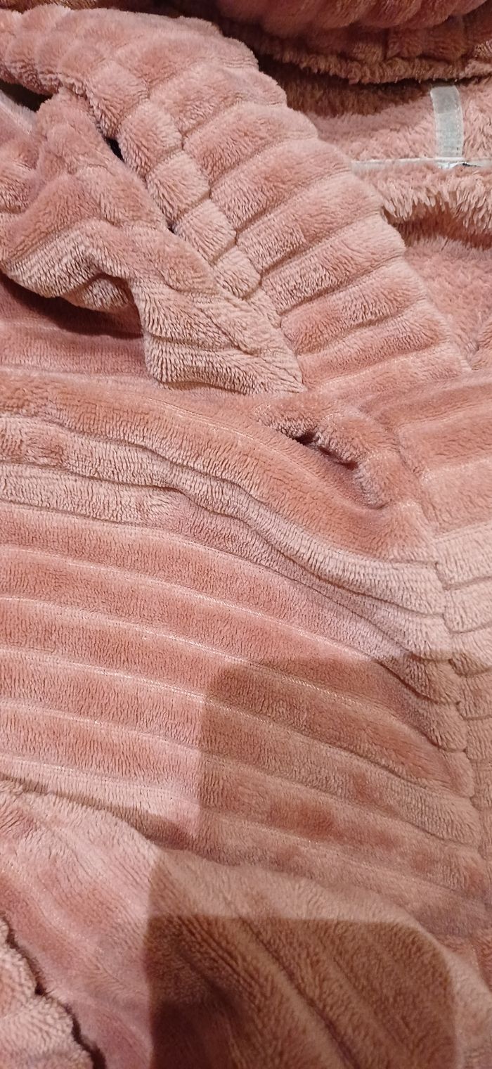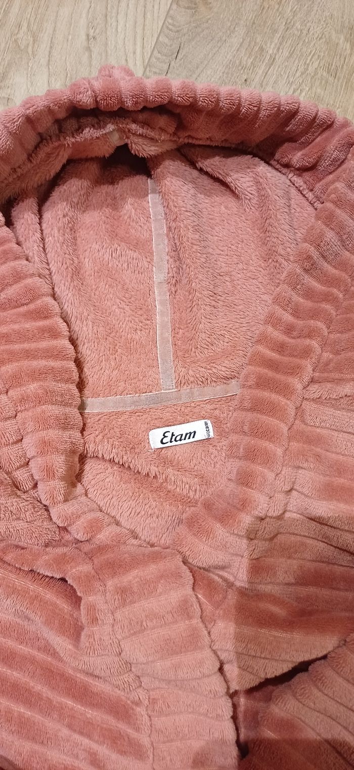 Je vends cette robe de chambre Etam en velours côtelé de couleur rose.