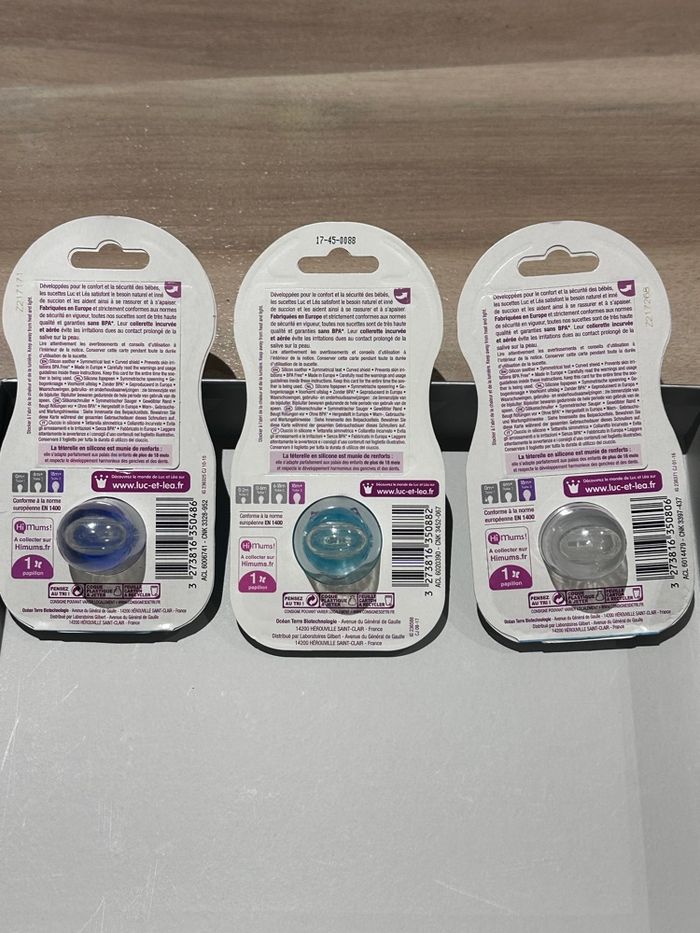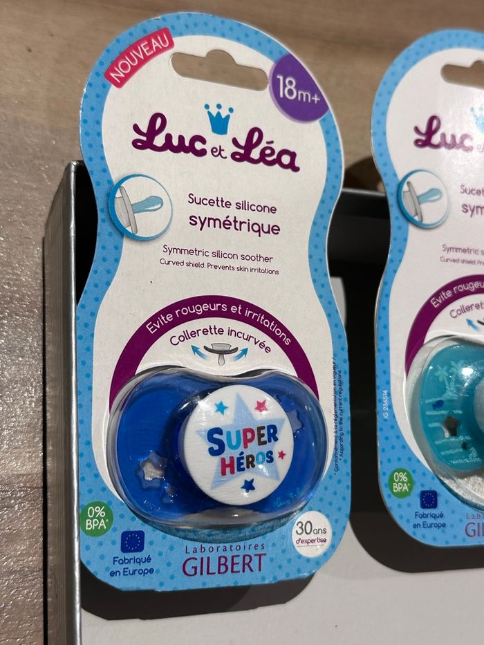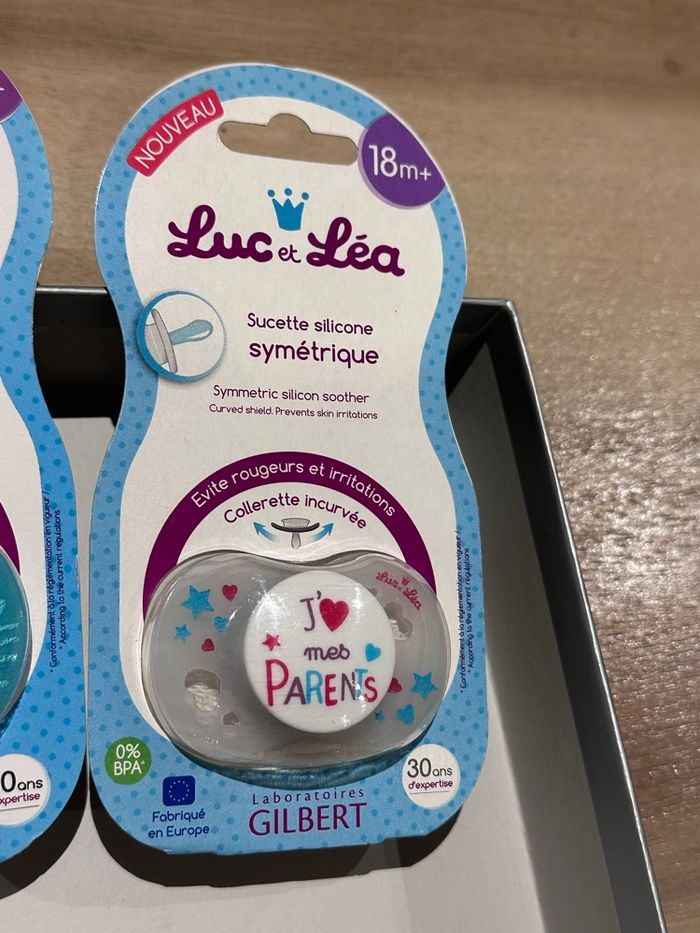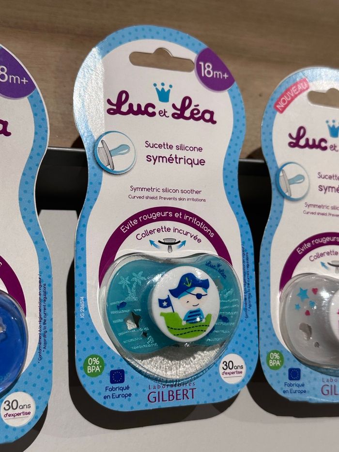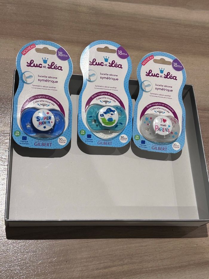 Lot de 3 sucette neuves dans leurs emballages Luc et Léa 18mois et plus