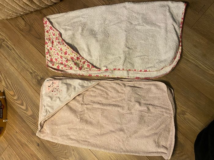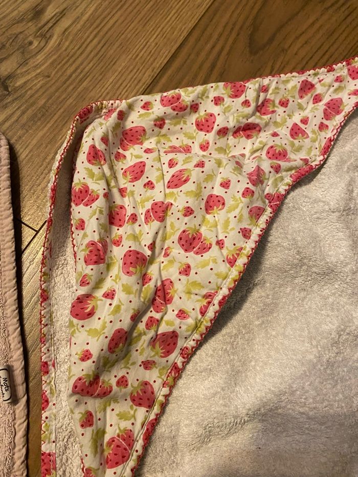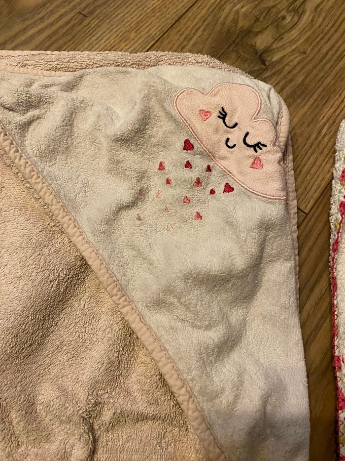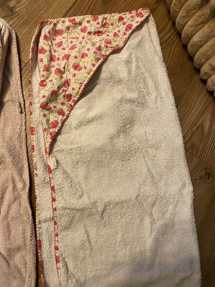 Lot 2 capes de bain roses nuage pluie de cœurs et fraises
