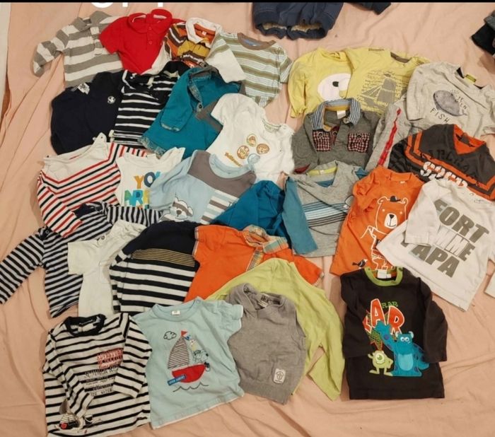 Vêtements bébé garçon de la naissance à 2 ans. Bodies, t-shirts, pantalons, shorts, pulls et plein d'autres choses en excellent état. Les prix : Bodie 0,50€ T-shirt 1€ Pull 1,50€ Pantalon 2€ Short 1€ Manteau 15€ Dites moi ce que vous voulez et je vous envoie en photo ce que j'ai et vous donne le prix total. Le poids du colis dépendra du lot acheté. Merci!
