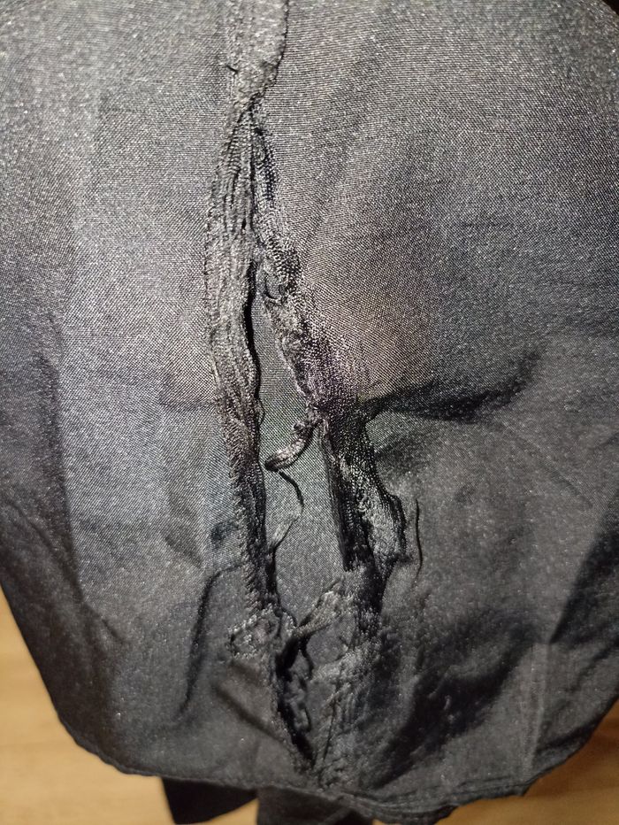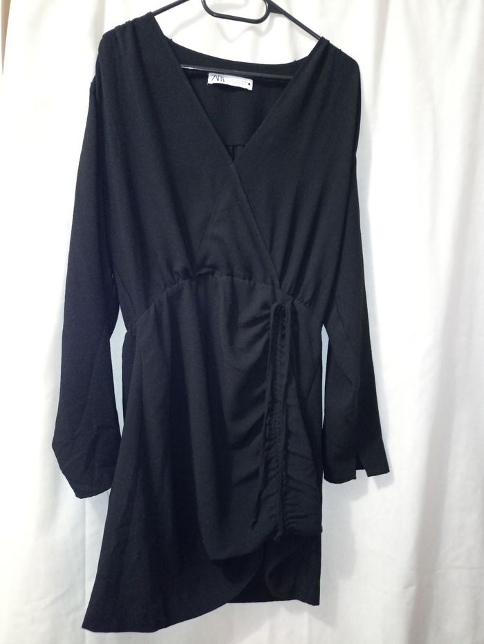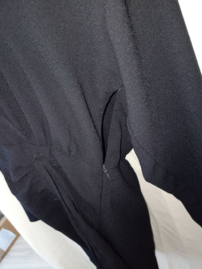 Jolie robe noire, simple. Fermeture sur le côté. Lacet a resserrer sur un côté pour un effet asymétrique au niveau des cuisses. Petit décolleté, manches longues. Doublure , légèrement déchiré sur la couture (si une bonne couturière sait refaire 😉) #robe #robesimple
