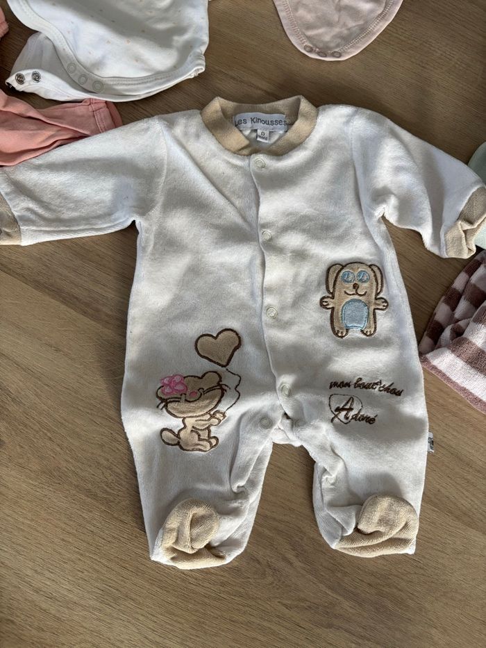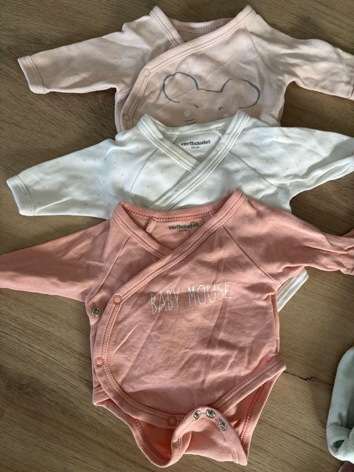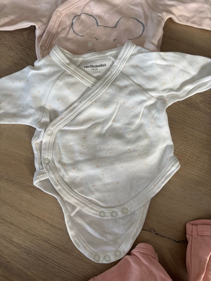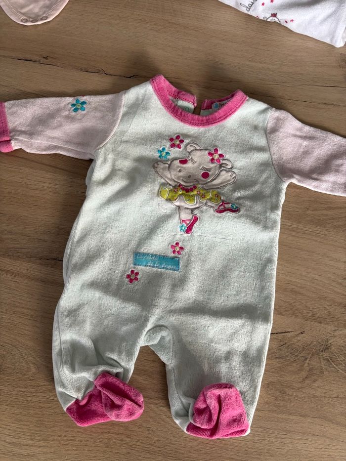 Lot de vêtements filles en taille naissance (0 mois). Comprenant 5 pyjamas chaud, 3 body manche longues (marque verbaudet) et 1 t-shirt manches longues. Prix du lot : 4€