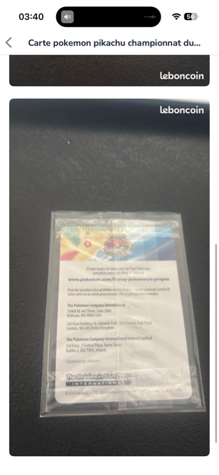 Je vends cette carte Pokémon Pikachu scellée, édition spéciale du Championnat du Monde