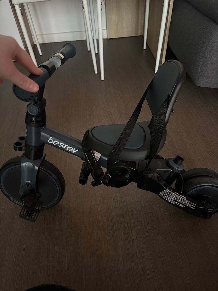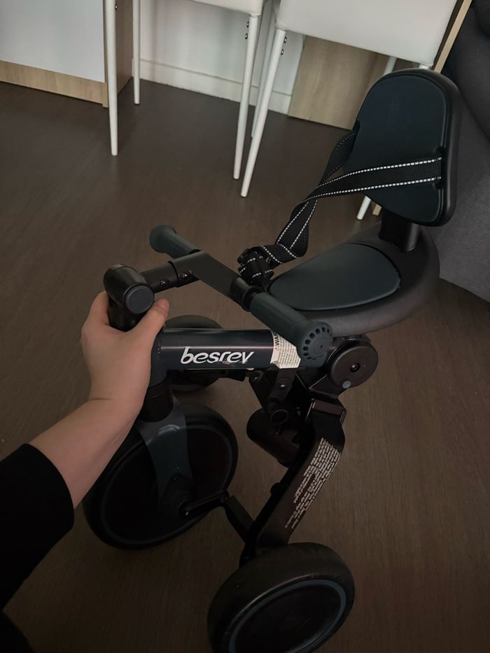 Tricycle Besrey pour enfants de 1 à 3 ans, équipé d'une poignée de poussée, d'un dossier et d'une ceinture de sécurité.