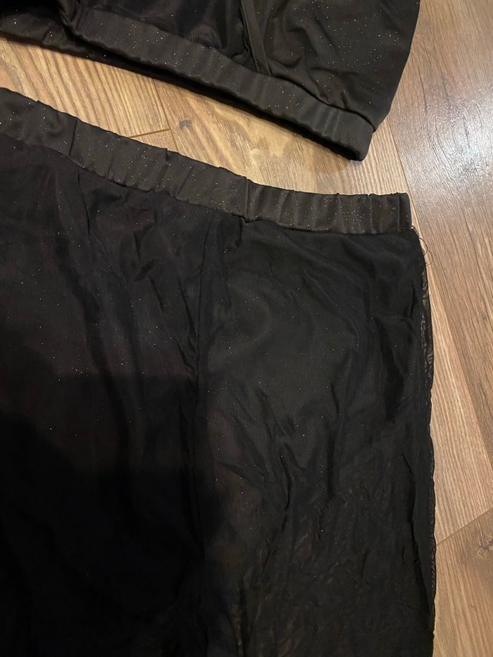 Ensemble de danse 2 pièces taille S, noir transparent à paillettes.