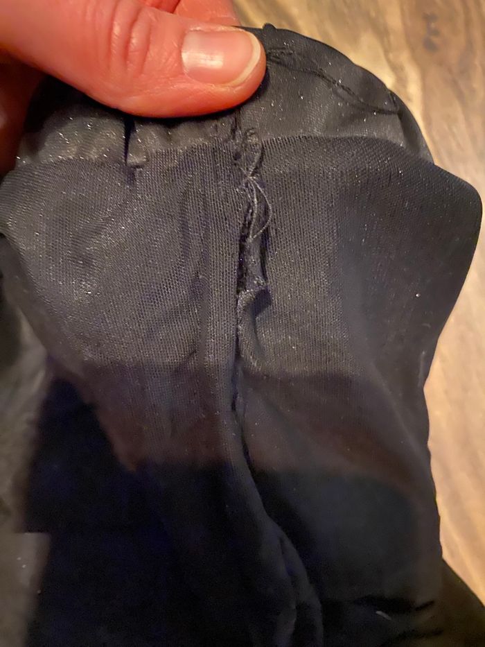 De plus, il a un petit accroc sur un défaut de couture sur le côté de la taille (voir photo). Reçu tel quel avec le défaut mais n’a jamais été porté.