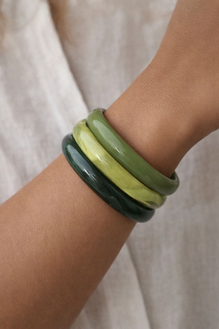 Lot 3 Bracelets style vintage acrylique vert