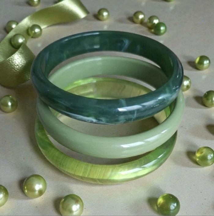 Lot 3 Bracelets style vintage acrylique vert - photo numéro 1