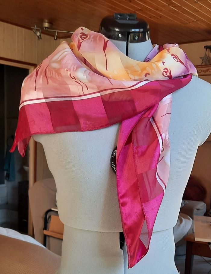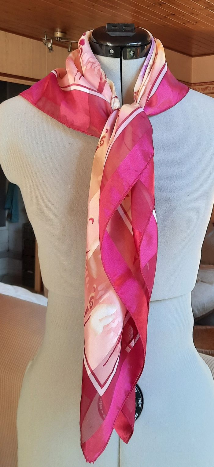 Foulard rose imprimé géométrique - photo numéro 4