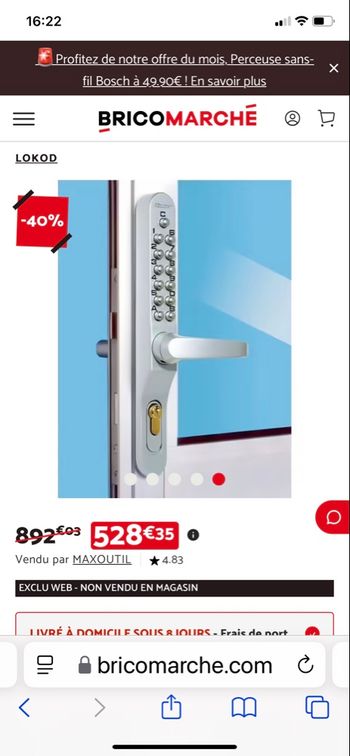 ▪︎Prix neuf : environ 80 € (chez Leroy Merlin, site officiel, etc.).