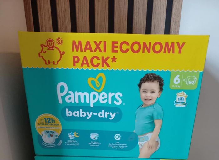 Bonjour je vends un carton de couches pampers Taille 6 80 couches dans un carton pour 20€ Envoi rapide