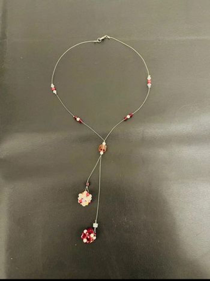 Collier ras du cou en perles rouges