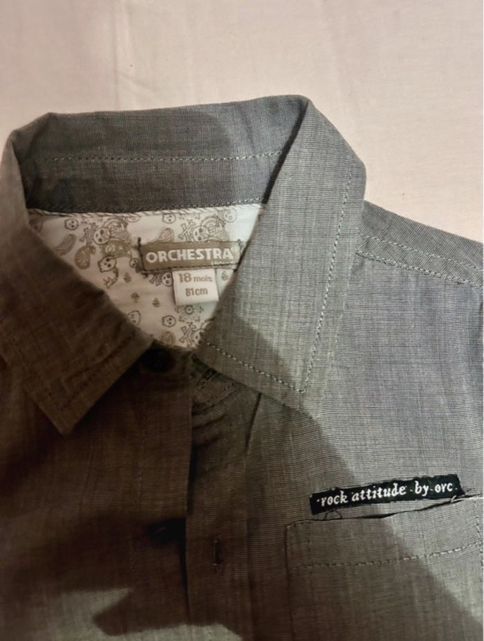 Je vends cette chemise Orchestra pour bébé, taille 18 mois (81 cm). Elle est en très bon état, confortable et agréable à porter.
