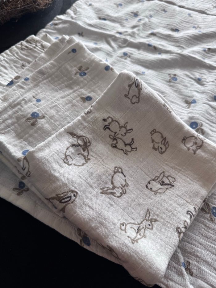 Lot 4 langes bébé 65x65cm IKEA lapins et fleurs