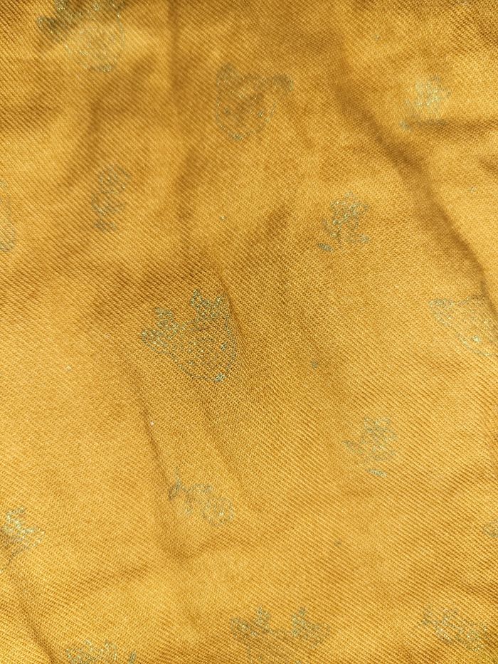 Combinaison salopette doublée Sergent Major Moutarde avec petit noeud et motifs biches et fleurs dorés Boutons fleurs dans le dos Pressions à l'entrejambe #virgy61fille9mois