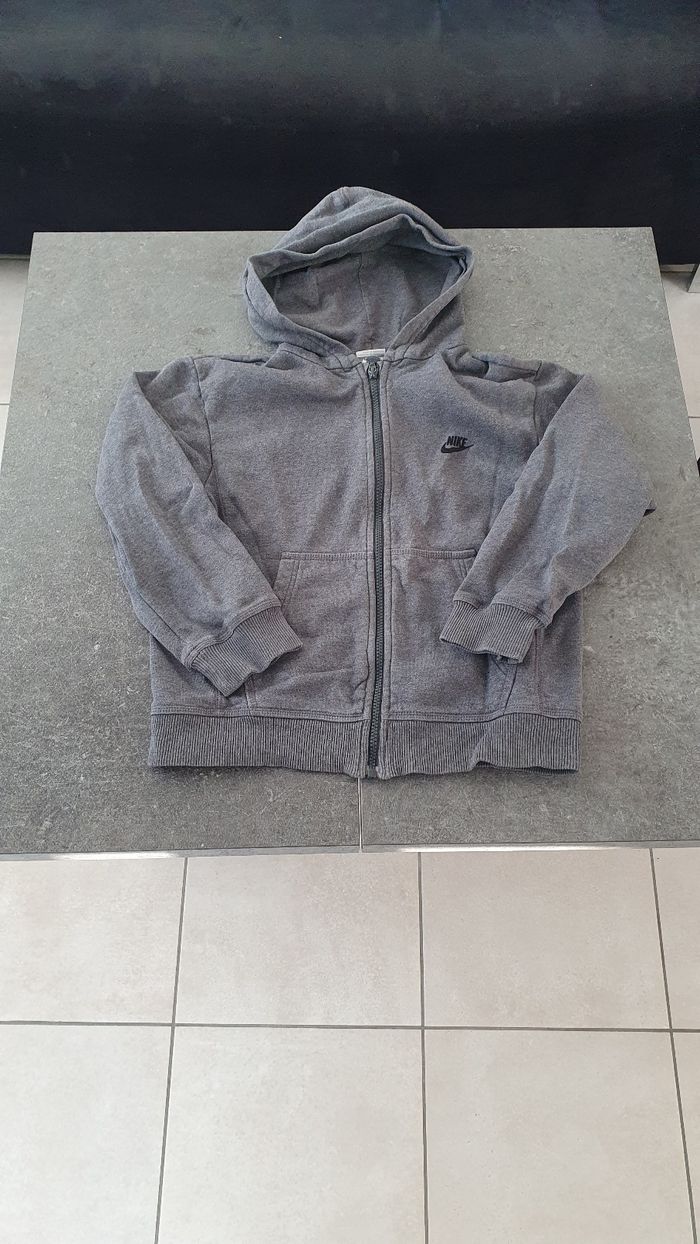 Je vends ce gilet zippé Nike gris pour enfant de taille 8 ans, en très bon état.