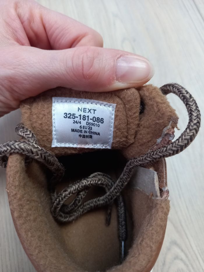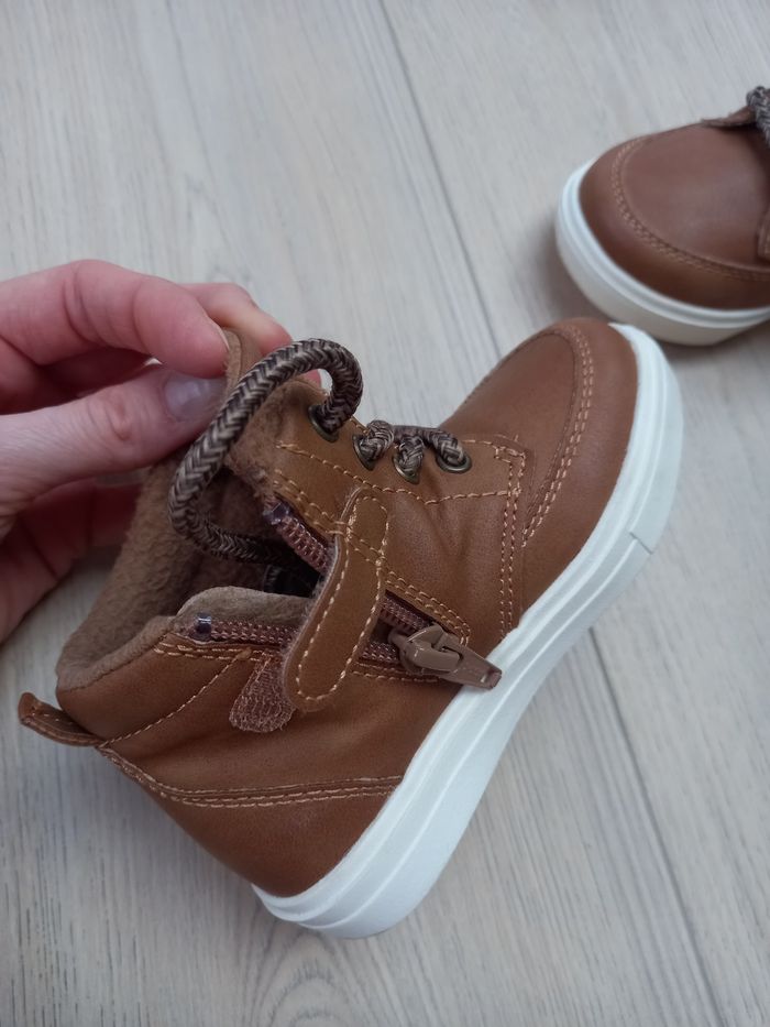 Chaussures en cuir marron, neuves, taille 23. Chaudes, rembourrées. Avec zip et lacets. Portées une seule fois.