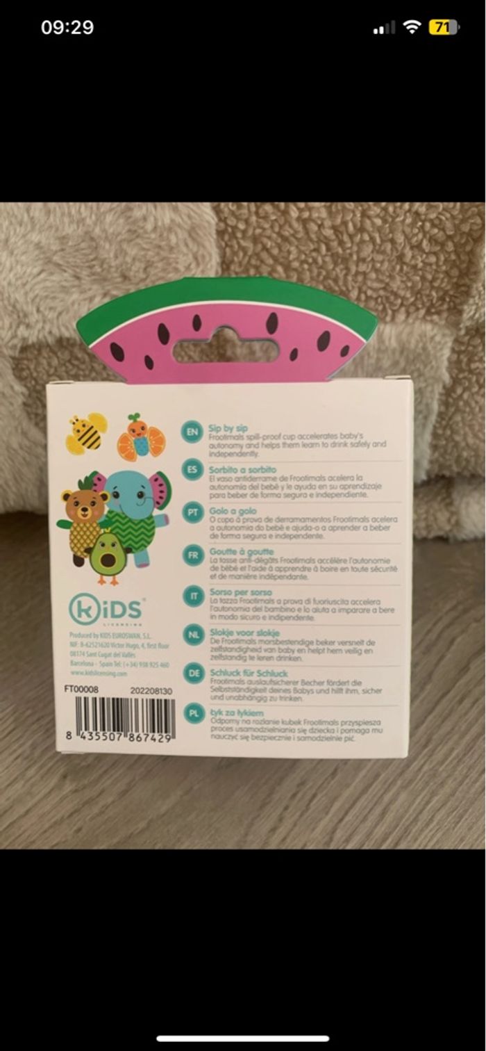 VERRE D'APPRENTISSAGE BÉBÉ 350ML FROOTIMALS DES 8MOIS BPA FREE NEUF