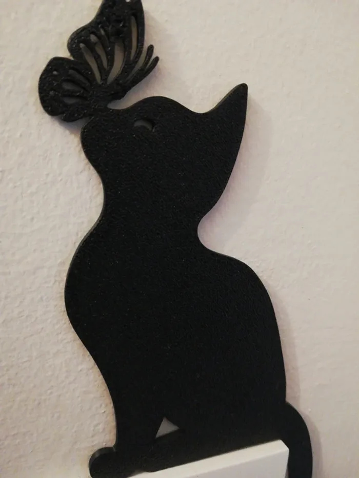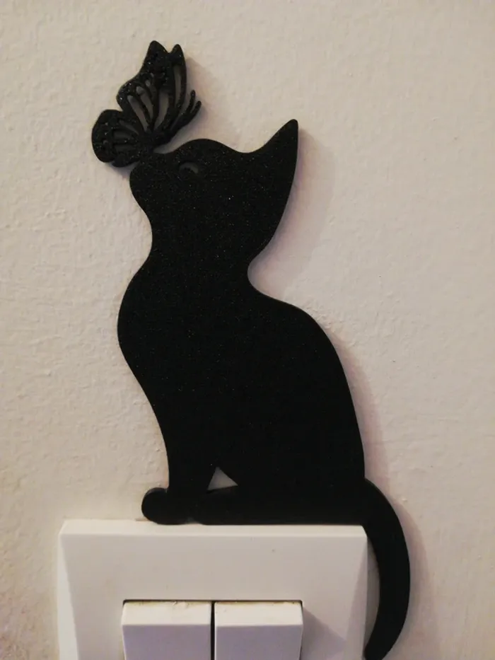 chat avec papillon décoration interrupteur à poser avec un peu de scotch double-face 11 cm de hauteur