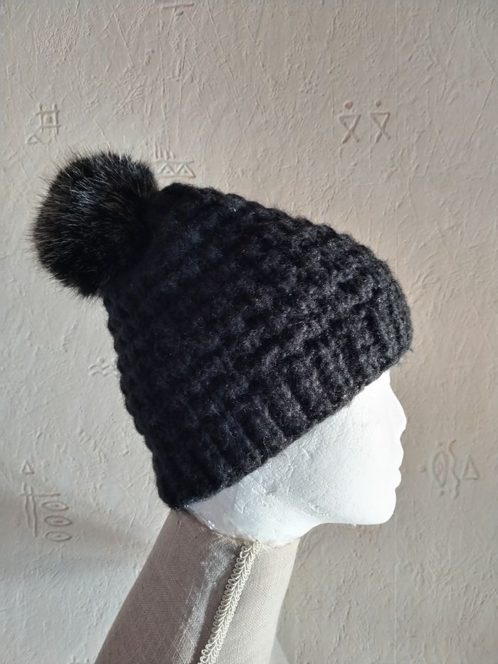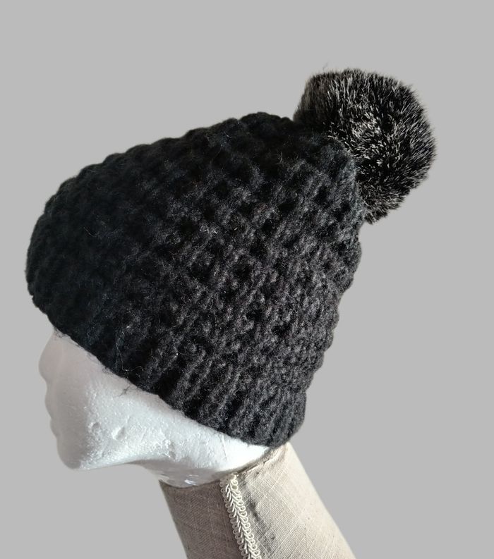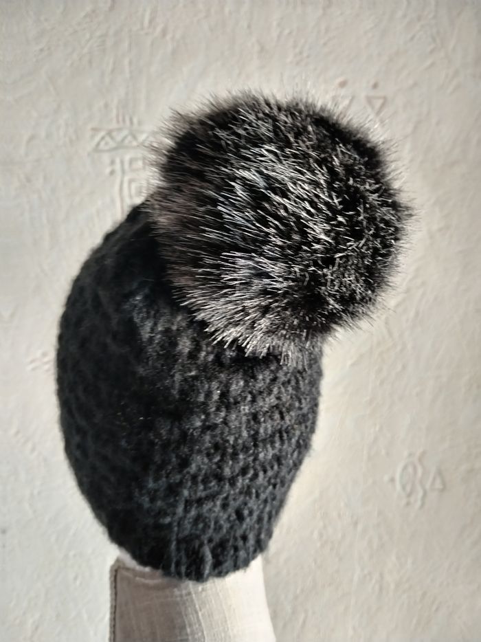 Bonnet noir avec Pompon fausse fourrure