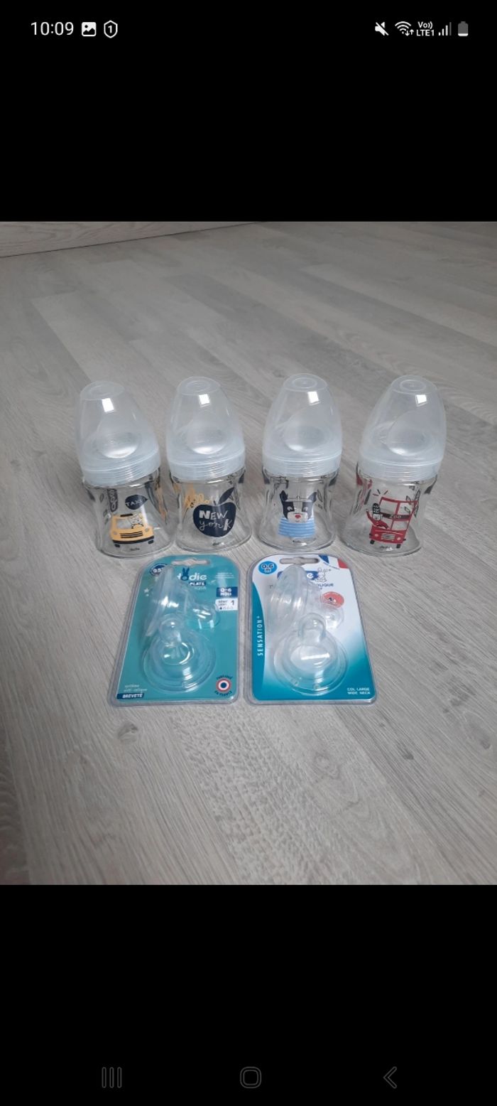 Lot 4 biberons verre 150ml + tétines plates neuves