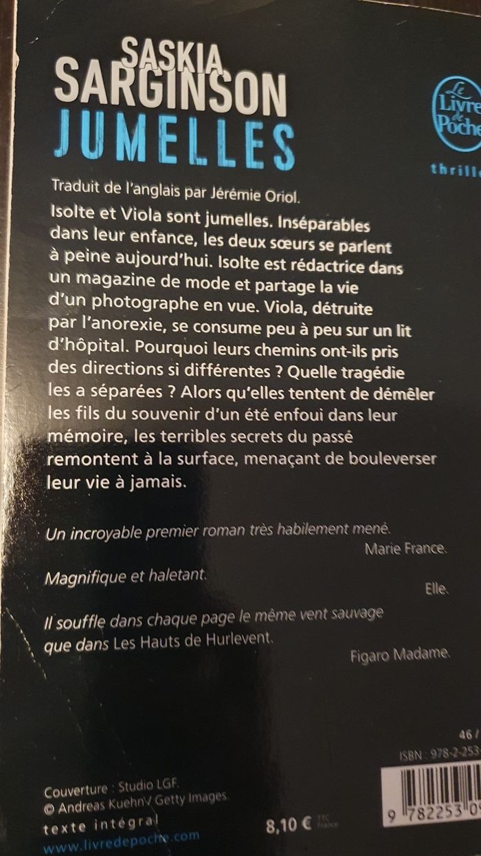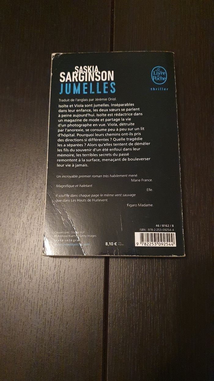 Je vends ce roman policier "Jumelles" de Saskia Sarginson. - Titre : Jumelles - Auteur : Saskia Sarginson - Genre : Policier - Format : Poche Bon état