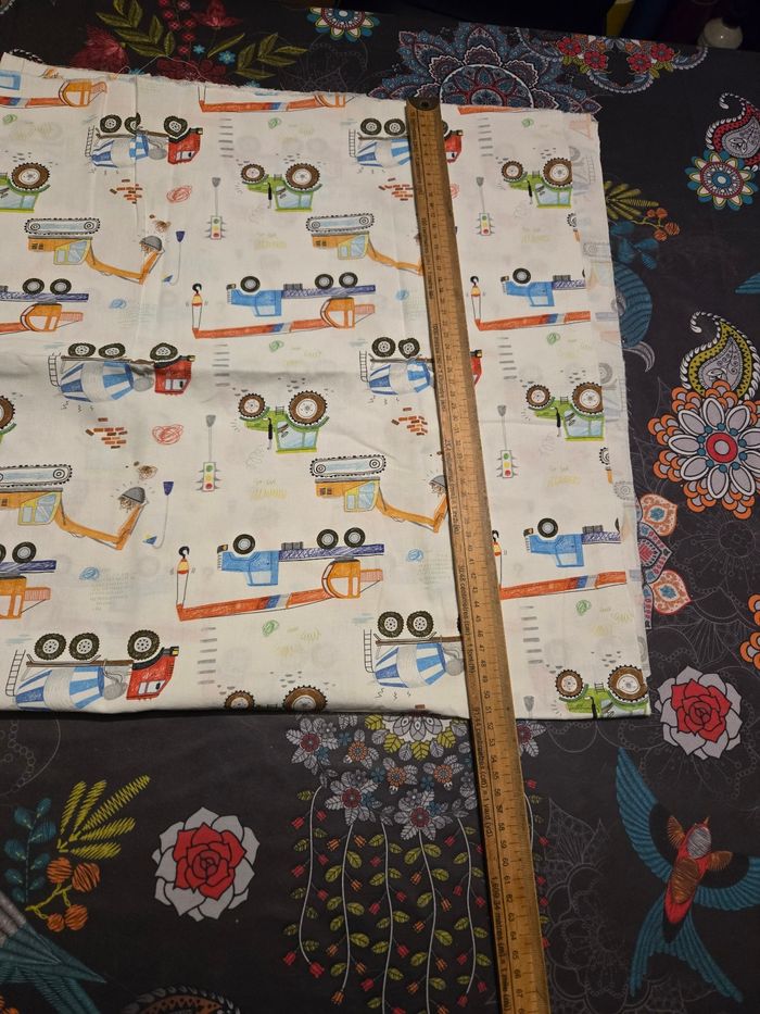 Cause demenagement je fais du tri dans mes affaires et je vend un morceau de tissus a coudre motif camion Taille 1m x 1m Neuf J ai d'autres articles de couture a vendre nhesitez pas a aller voir mes autres annonces. ⚠️ Les envois se font uniquement via mondial relais, shop2shop by chronopost, relais colis ou colissimo N'hésitez pas a me contacter pour plus d'infos supplémentaires Merci