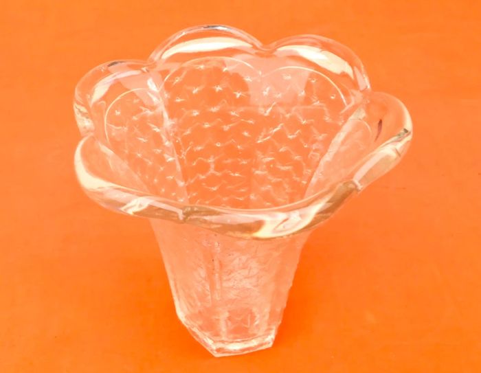 Style Art Déco  Vase Verrerie de Scailmont Belgique Verre transparent et granité - photo numéro 1