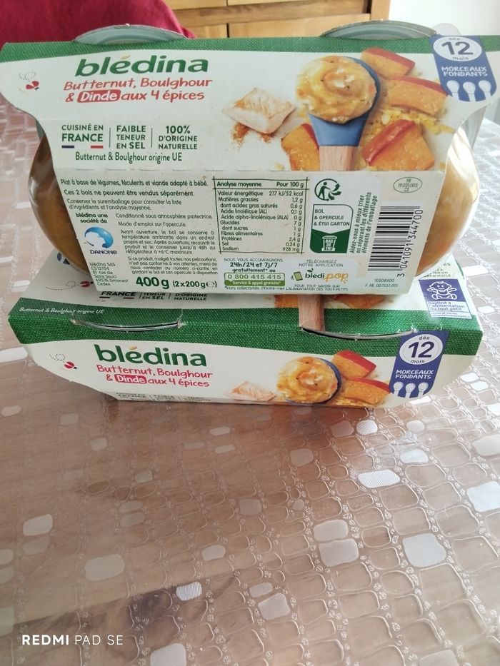 Bols Bledina Butternut, boulghour,dinde dès 12 ans