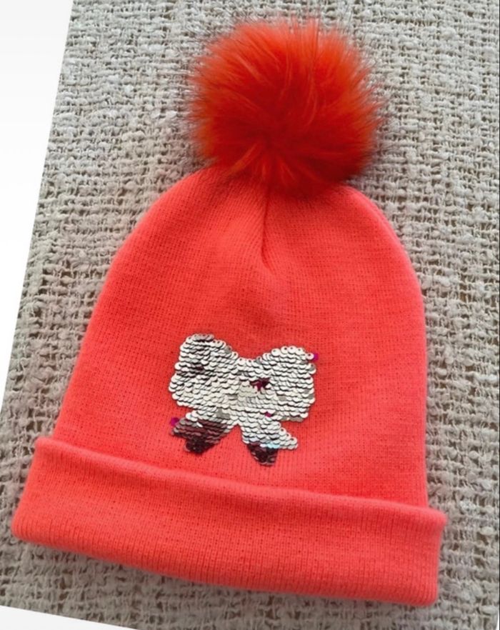 Bonnet «Primark » petit noeud en sequins argenté sur le devant qui change de couleur, taille 7/13 ans mais franchement conviendra pour toutes… neuf jamais porté 20x28 cm