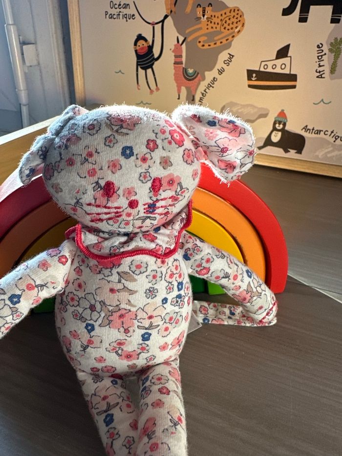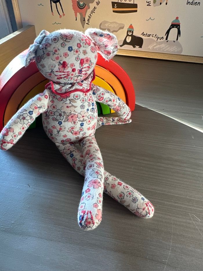 SOURIS PETIT BATEAU DOUDOU FLEURS ROSE