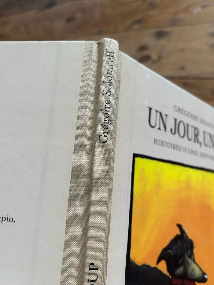 Magnifique livre d’histoires un jour un loup en très bon état général Voici l'histoire d'un loup solitaire qui voudrait bien trouver une compagne. Il y a aussi dans ce livre l'histoire d'une renarde, celle d'un lapin, d'un autre loup, d'un autre lapin, etc. Ce sont douze histoires d'amour et d'amitié, douze petites nouvelles à écouter pour les plus jeunes avant de s'endormir, ou à lire pour les plus grands à n'importe quelle heure de la journée. Grégoire Solotareff Histoires d’amis histoires d’amour