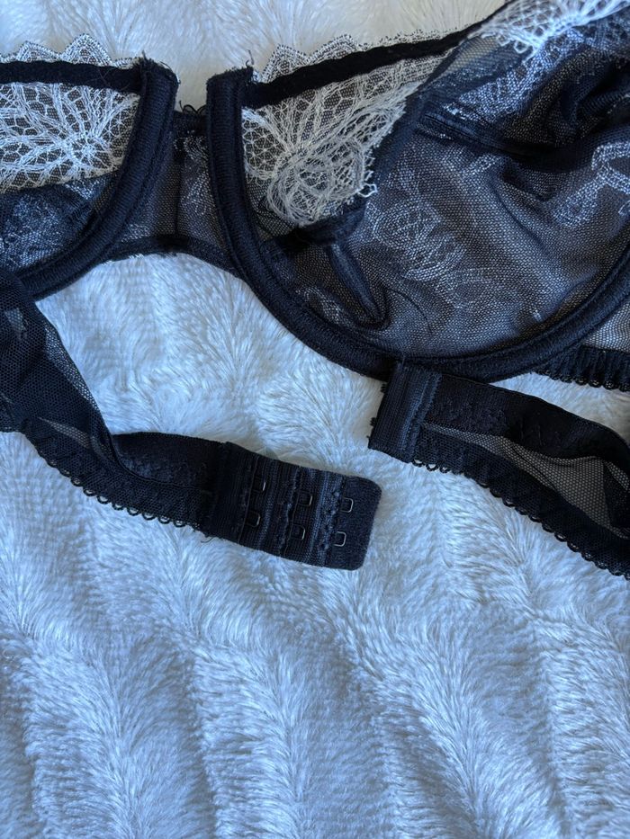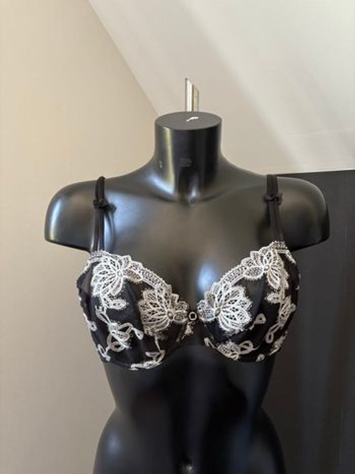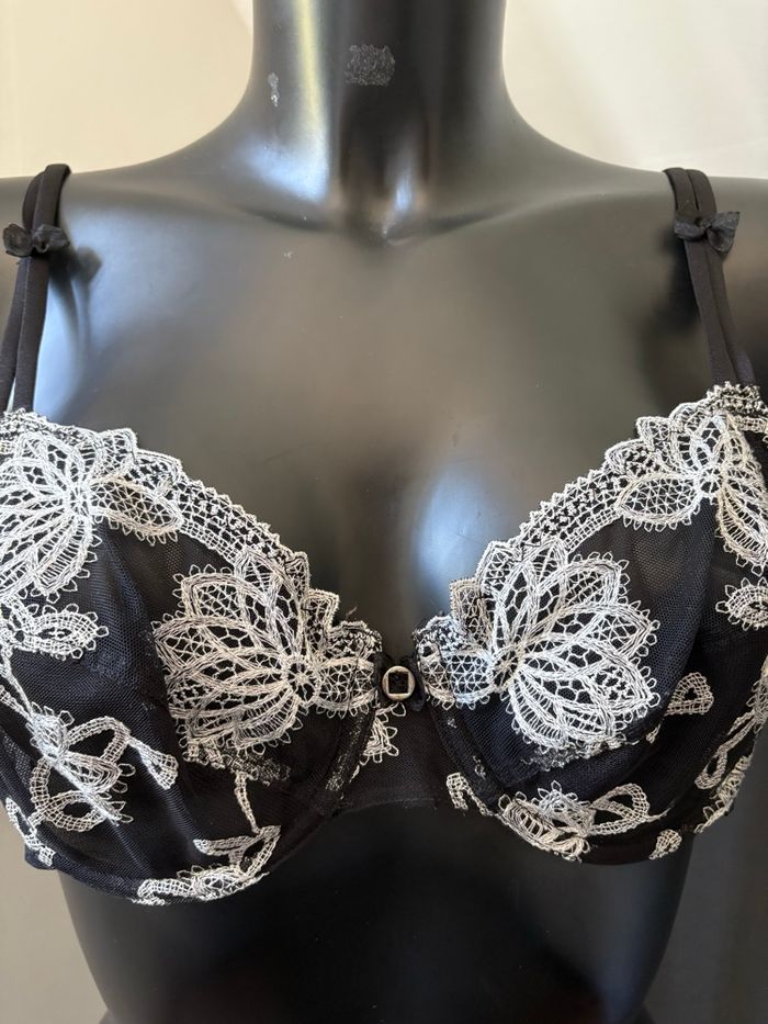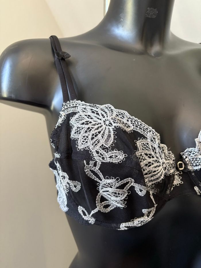 Très joli soutien-gorge Antinéa noir avec dentelle blanche florale, à la fois élégant et féminin .