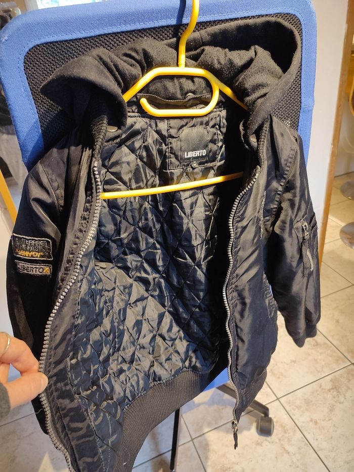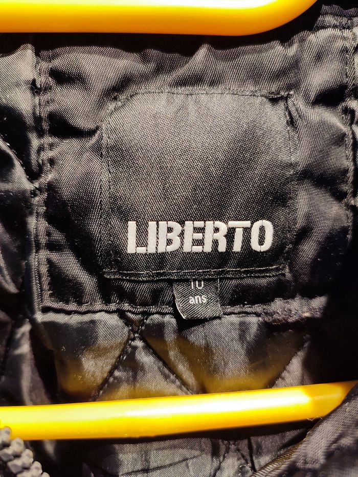 Blouson à capuche marque Liberto, peu porté il est en super état. Taille 10 ans. Renfort isolant, tient chaud. Deux poches ventrales + 1 poche intérieure + poche sur la manche.