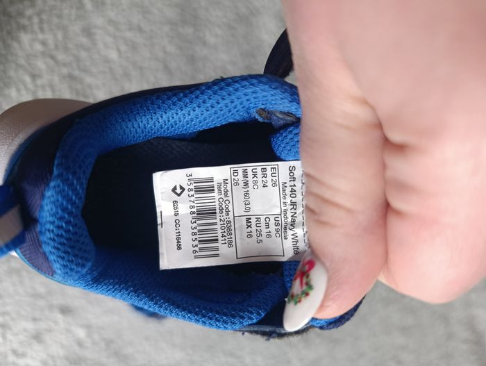 Paire de baskets enfant confortables et légères, idéales pour l’école ou le quotidien. Pointure : 26 Couleur : bleu marine et bleu Fermeture : scratch + lacets élastiques (faciles à enfiler) Semelles propres et très peu usées (voir photos) En très bon état, portées peu de temps Chaussures pratiques, solides et confortables pour accompagner les enfants dans toutes leurs aventures 👦👧 👉 Pensez aux lots, remises activées 💸 👉 Dressing moderne et à petit prix