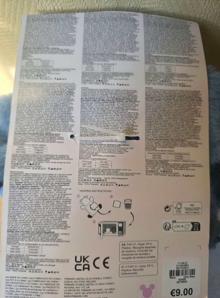 Neuve avec étiquette Bouillotte à grains Stitch. Peluche 100% polyester.