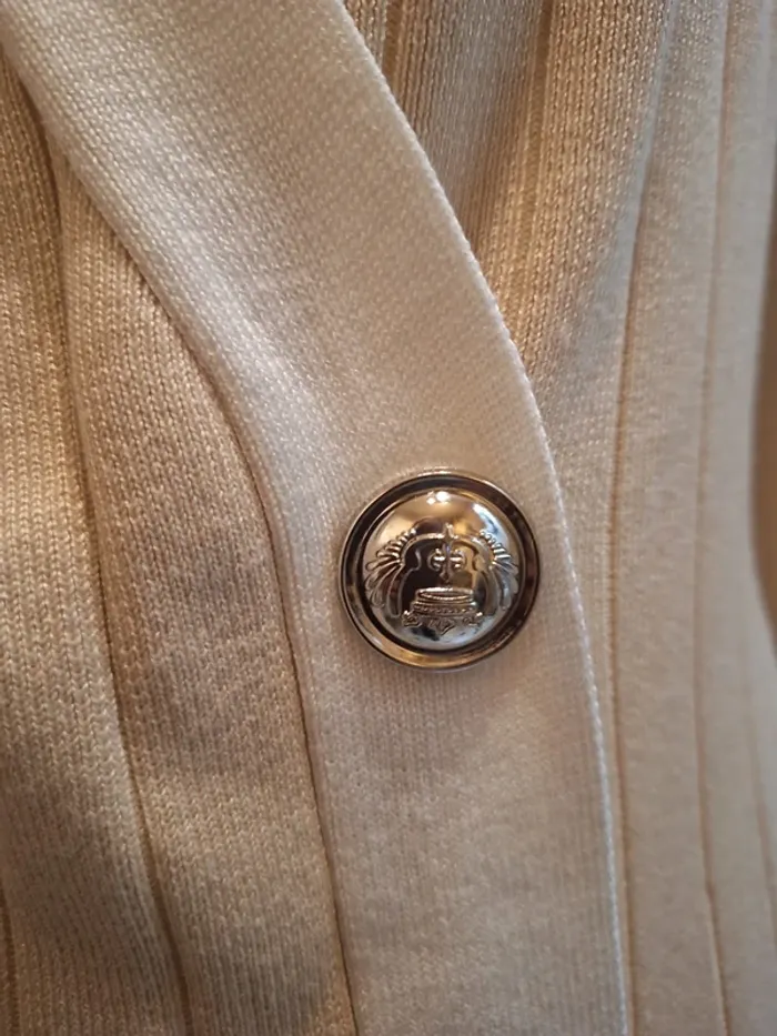 Robe pull ou robe cardigan crème et liserés blanc - boutons officiers pressions qui vous permet de porter la robe en guise de gilet - longueur 90 cm - coupe cintrée et proche du corps - matière douce & épaisse - taille unique idéale pour les tailles S & M ou 36 & 38 - état sans défaut ps: je ne fais pas de photo portée #robepull #robepullcrème #robepullbeige