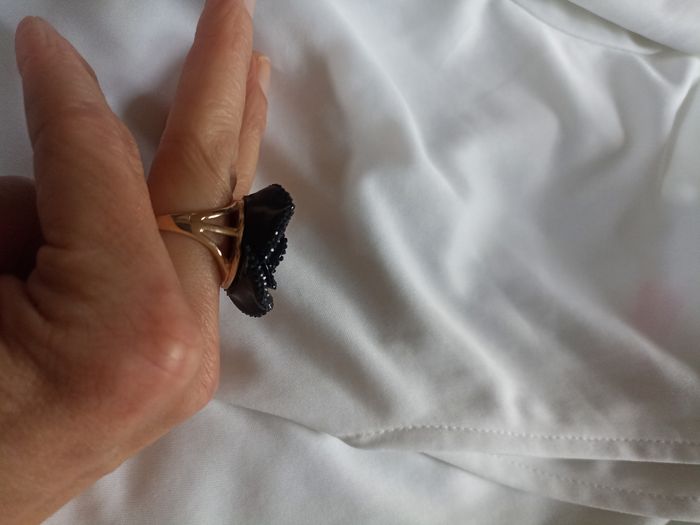 Bague fantaisie Rose noire strass 16.9 cm Très bon état #ap03bijoux #baguefemme