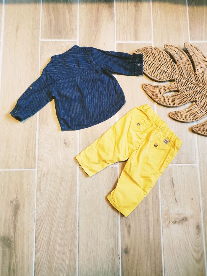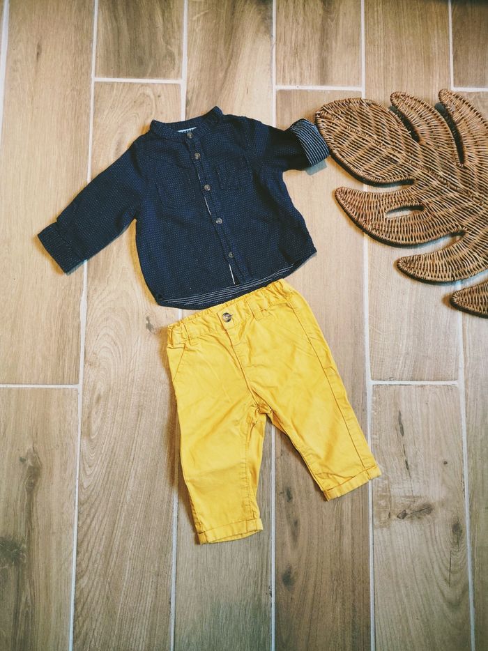 đŸ§’đŸ»Tape Ă  l'oeil/Kiabi - Ensemble Pantalon en toile jaune et chemise bleue Ă  pois 2 en 1 - Taille 6 mois REF01-REF11 🎀 Joli ensemble habillĂ© et pep's Avec un pantalon en toile Kiabi ✹Taille Ă©lastique ✹Passants pour ceinture ✹Poches sur le devant et Ă  l'arriĂšre Une chemise Tape Ă  l'oeil ✹Col mao. Coloris bleu marine extĂ©rieur Ă  pois intĂ©rieur rayures ✹Boutons sur le devant ✹Manches longues et courtes 2 en 1. PossibilitĂ© de retrousser les manches grĂące aux boutons et liens Ă  l'intĂ©rieur ❇N'hĂ©sitez pas Ă  crĂ©er un lot pour Ă©conomiser sur les frais de port❇ Ensemble bĂ©bĂ©, ensemble coton bĂ©bĂ©, ensemble vĂȘtements hiver, Lot bĂ©bĂ© hiver, vĂȘtements automne, vĂȘtement bĂ©bĂ©, vĂȘtement garçon, lot garçon