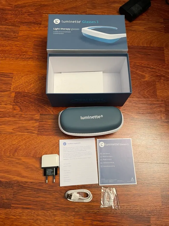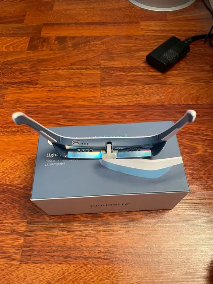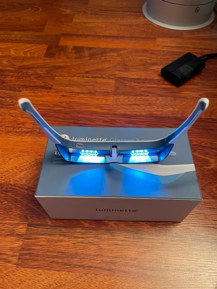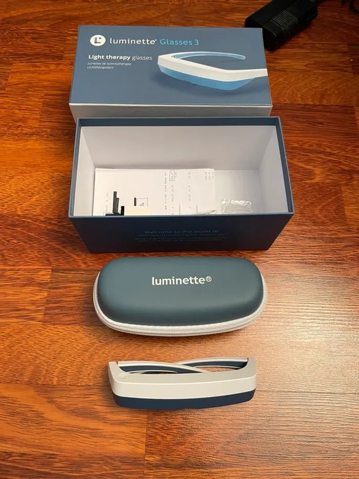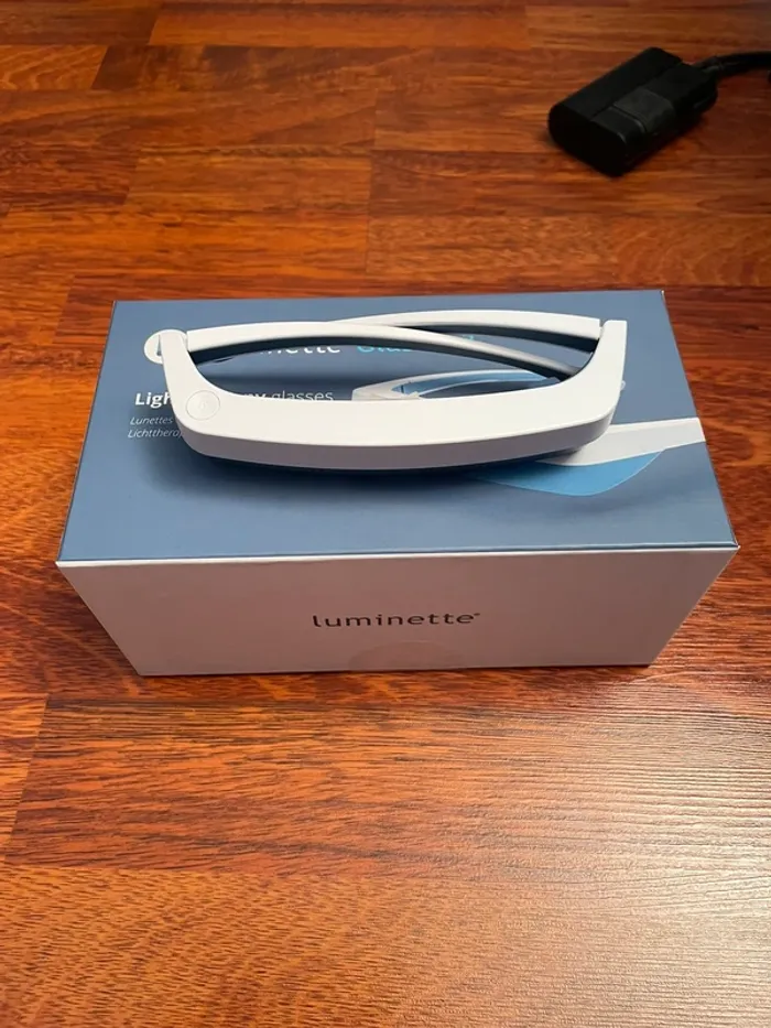 Vends paire de lunettes de luminothérapie Luminette 3, l'alternative idéale aux lampes fixes. Parfait pour lutter contre le blues hivernal, réguler le sommeil et booster son énergie dès le matin sans rester immobile !