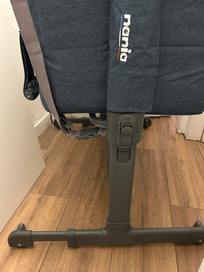 Parfait état, il est réglable en hauteur et possède des roulettes ainsi qu’une sangle pour l’accrocher au lit parental en toute sécurité.