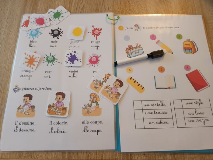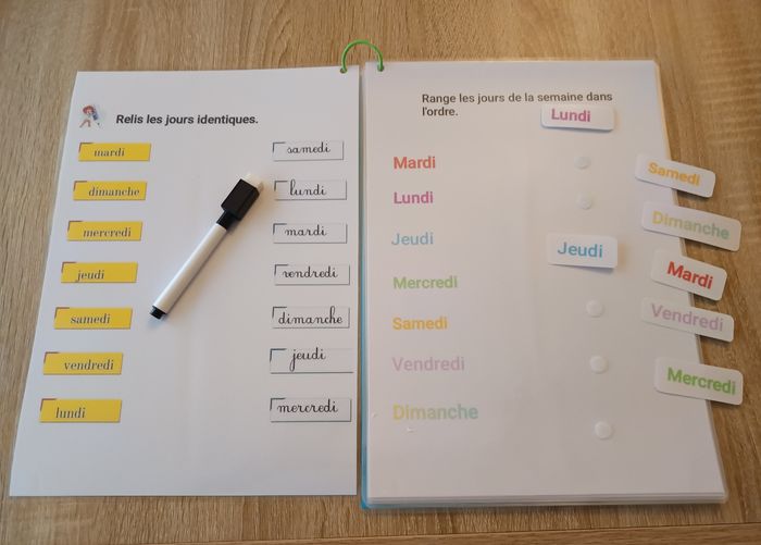Livret d'activités Montessori regroupant de la lecture, de la logistique, la motricité, les chiffres, les couleurs, les jours de la semaine ainsi que diverses activités variées. - Compote 15 fiches différentes. - Vendu avec son stylo effaceur. - Livret entièrement plastifié pour une utilisation multiple qui dure dans le temps. - Confectionner à la commande. - Pochette refermable fourni. D'autres activités sur mon profil.