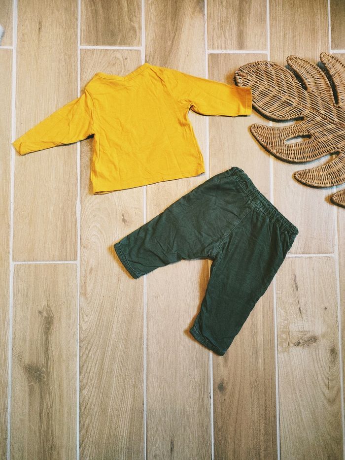 🧒🏻H&M - Ensemble Pantalon velours vert foncé et t-shirt avec écriture et dessin dinosaure - Taille 6mois REF11 🎀 Joli ensemble aux couleurs automnales Avec un pantalon H&M ✨Matière velours côtelé. Couleur vert sapin ✨Taille élastique et liens de serrage ✨Petits boutons d'ornements Un t-shirt Kiabi ✨ Couleur jaune avec écritures cris et dessins Dinosaure ✨2 boutons sur l'épaule pour faciliter l'habillage ❇️N'hésitez pas à créer un lot pour économiser sur les frais de port❇️ Ensemble sport wear bébé, survêtement bebe, ensemble coton bébé, ensemble vêtements hiver, Lot bébé hiver, vêtements automne, vêtement bébé marron, vêtement bébé kaki, ensemble garçon