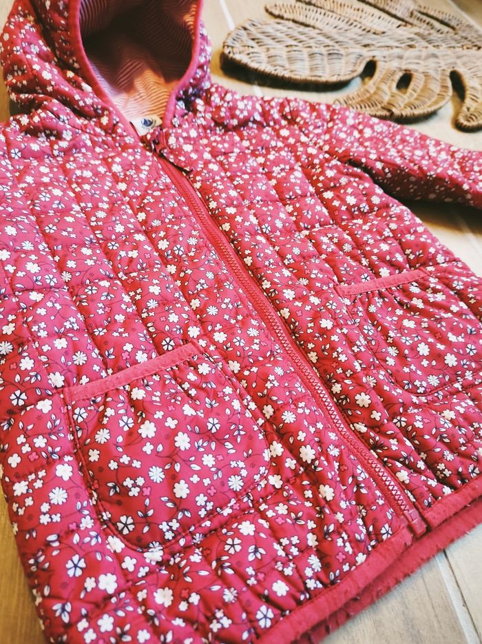 🌼Petit bateau - Manteau/ doudoune rouge motifs Liberty fleurs - Taille 3 ans