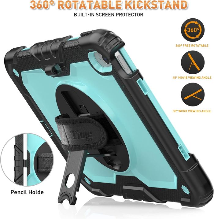 Support Béquille 360° : Permet de positionner l'iPad en mode paysage ou portrait pour regarder des vidéos ou taper.